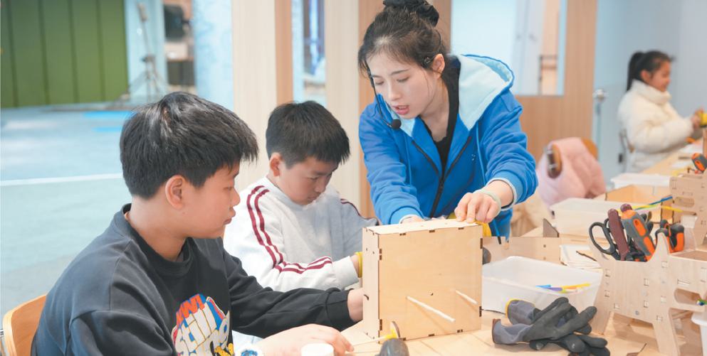 上海科技馆全新打造“明日科创营”教育空间,大批家长带着孩子来此探索体验。本报记者 袁婧摄