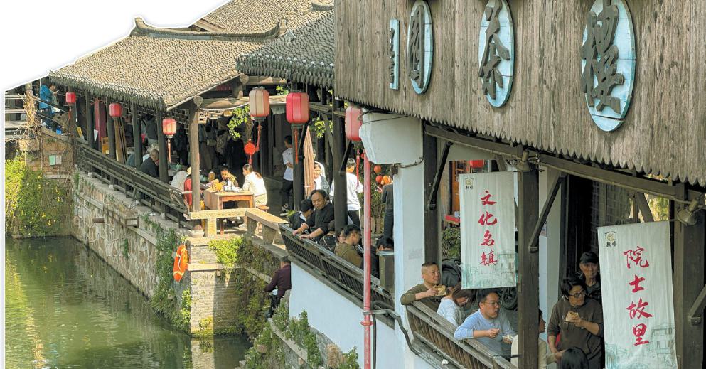 浦东新区的新场古镇人流如织,沿街传统小吃店铺生意火爆。 本报记者 陈龙摄