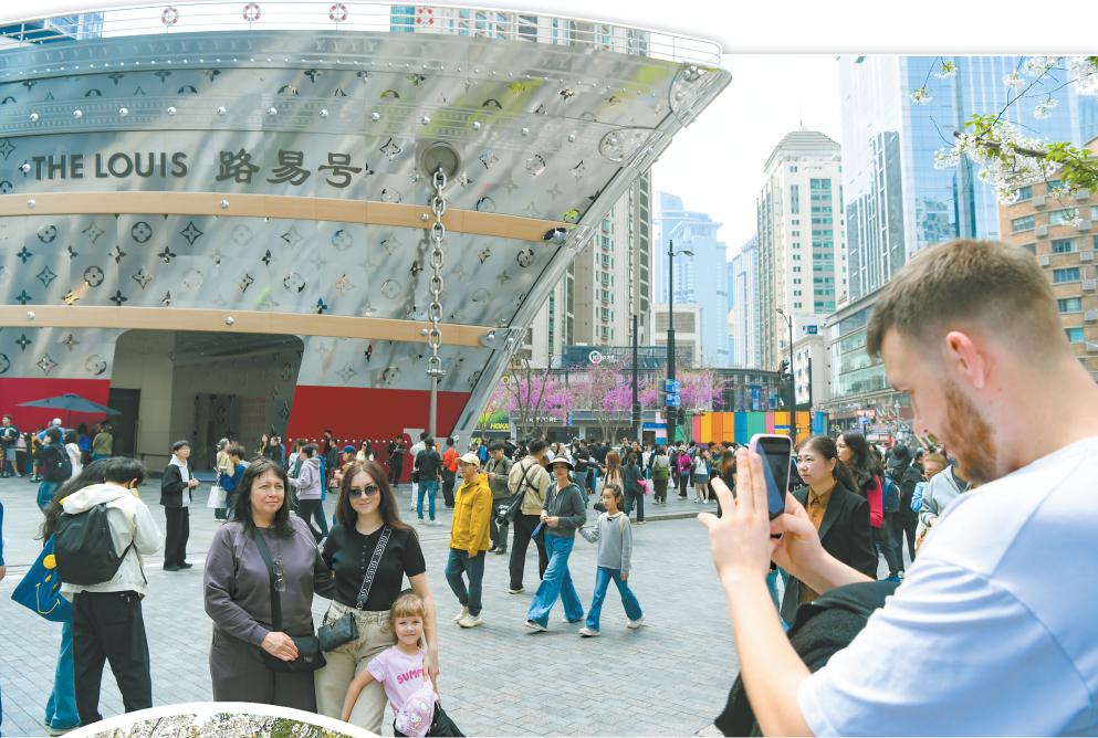 兴业太古汇的“路易号”吸引了大量游客拍照打卡。本报记者 张伊辰摄